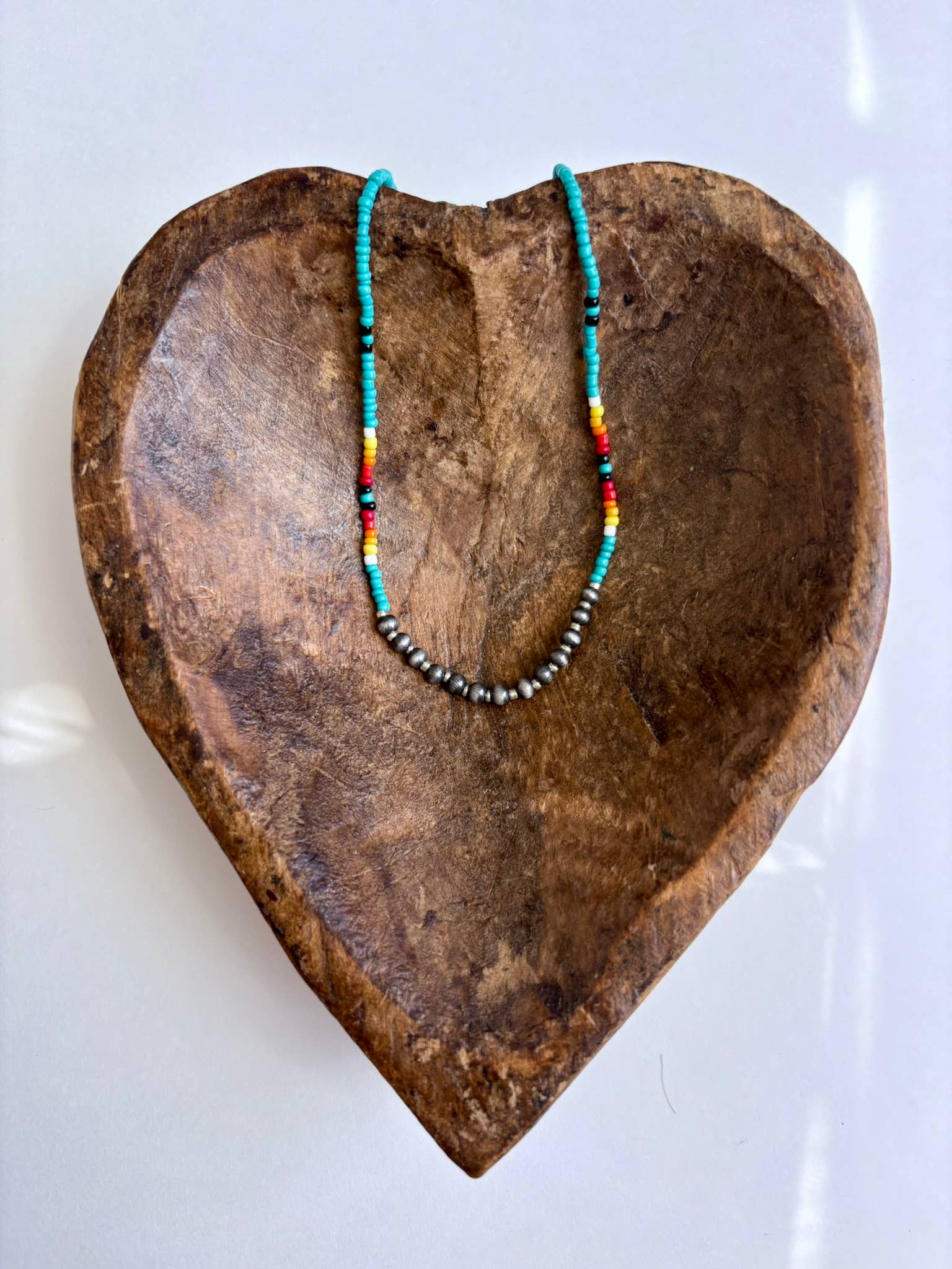 Western Navajo & Seed Bead Choker Necklace -Size: 12" + 3.5" -Navajo & Seed Bead