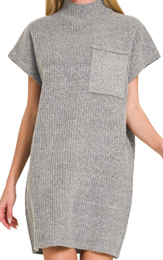 MOCK NECK SHORT SLEEVE SWEATER DRESS WITH POCKET - BEST QUALITY SWEATER DRESS - MOCK NECK