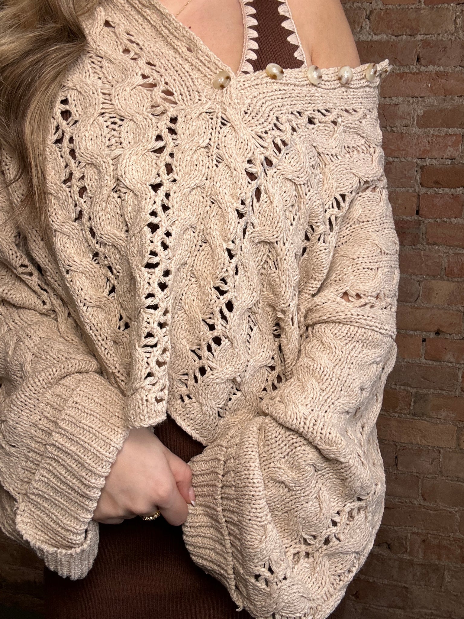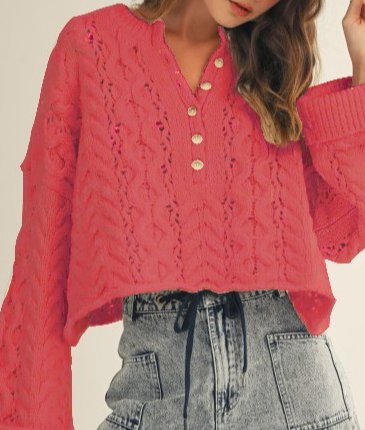 SOFT TWISTED RIBBED HALF BUTTONS DOWN SWEATER