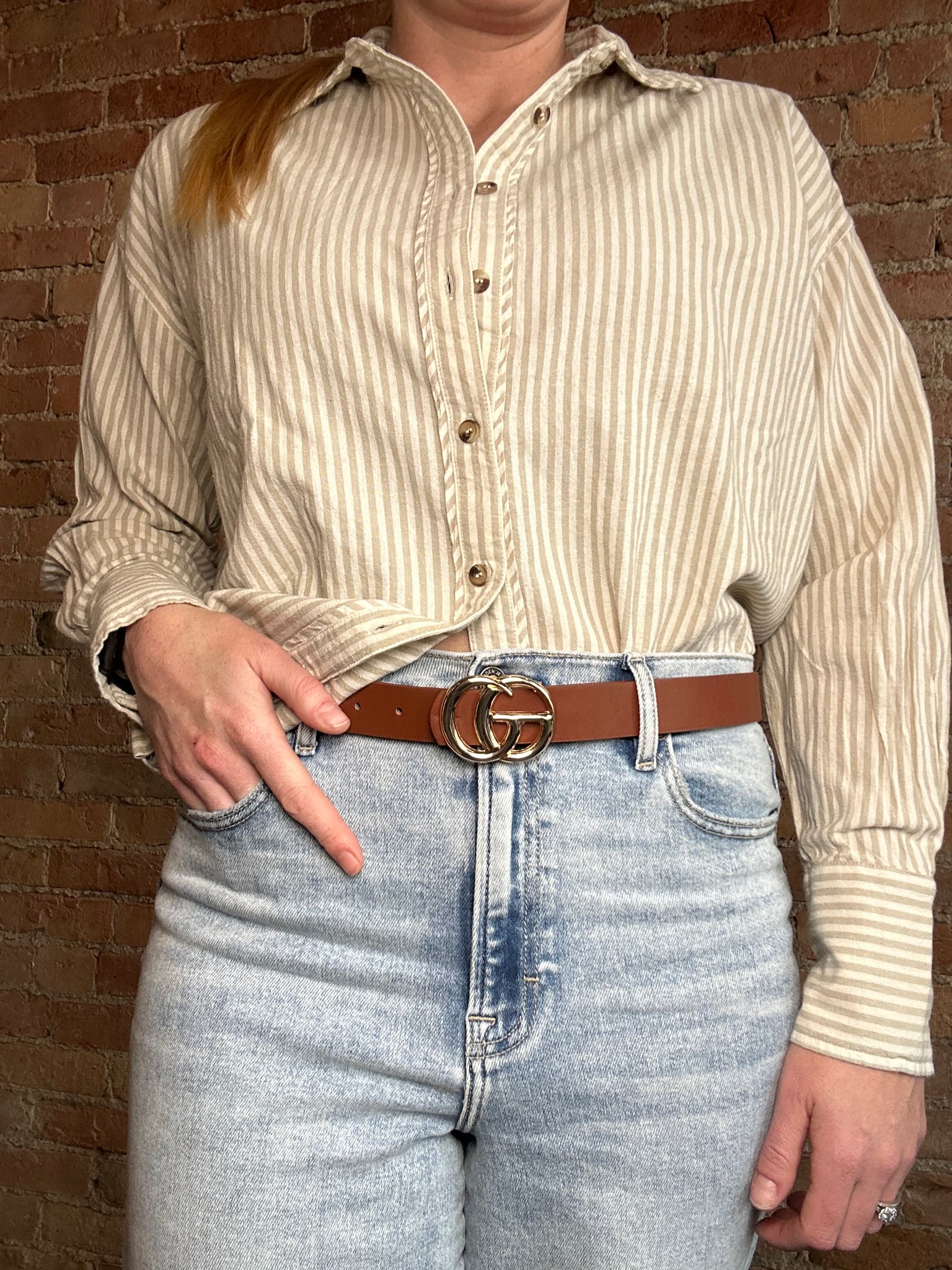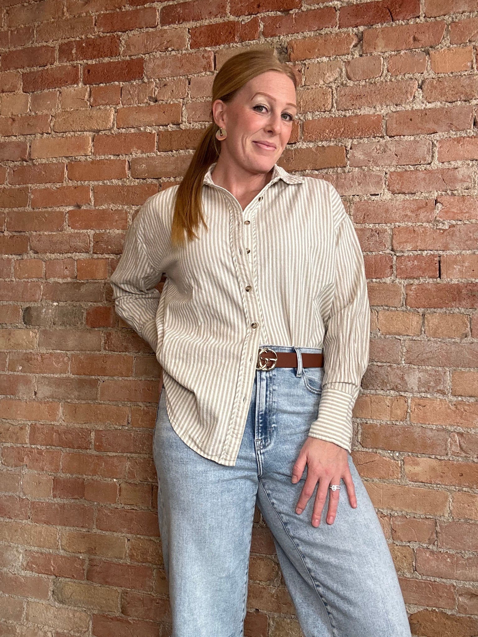OVERSIZED STRIPED BUTTON DOWN LONG SLEEVE SHIRT -100% COTTON