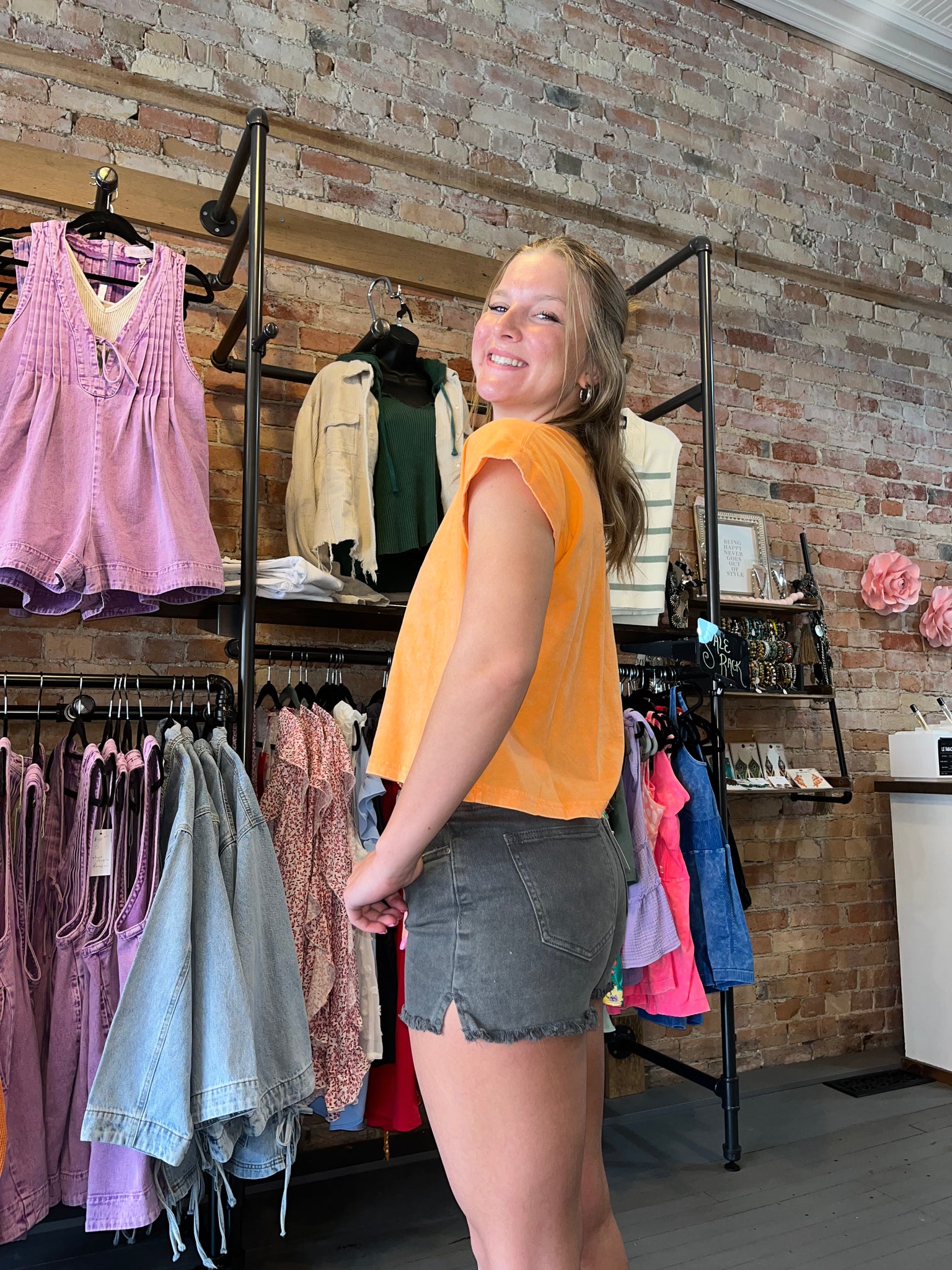 WASHED COTTON CUFFED SHORT SLEEVE TOP