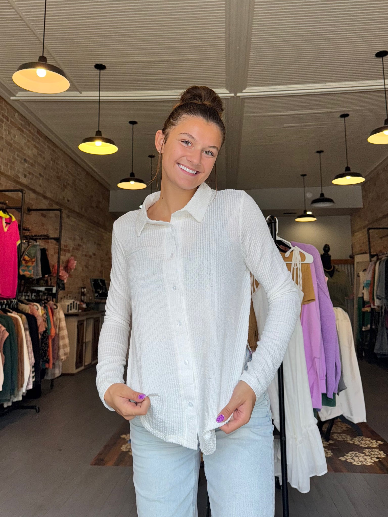 Washed Solid Textured Knit Shirt - Spread collar - Button-down