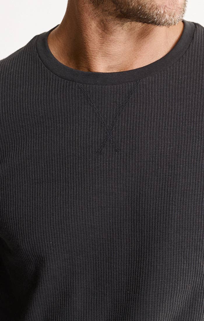 Thermal Crewneck: Crafted from a cotton-poly blend (60% cotton, 40% polyester) for lightweight warmth and breathability, it’s finished with ribbed cuffs and a classic crew neckline for a laid-back fit.