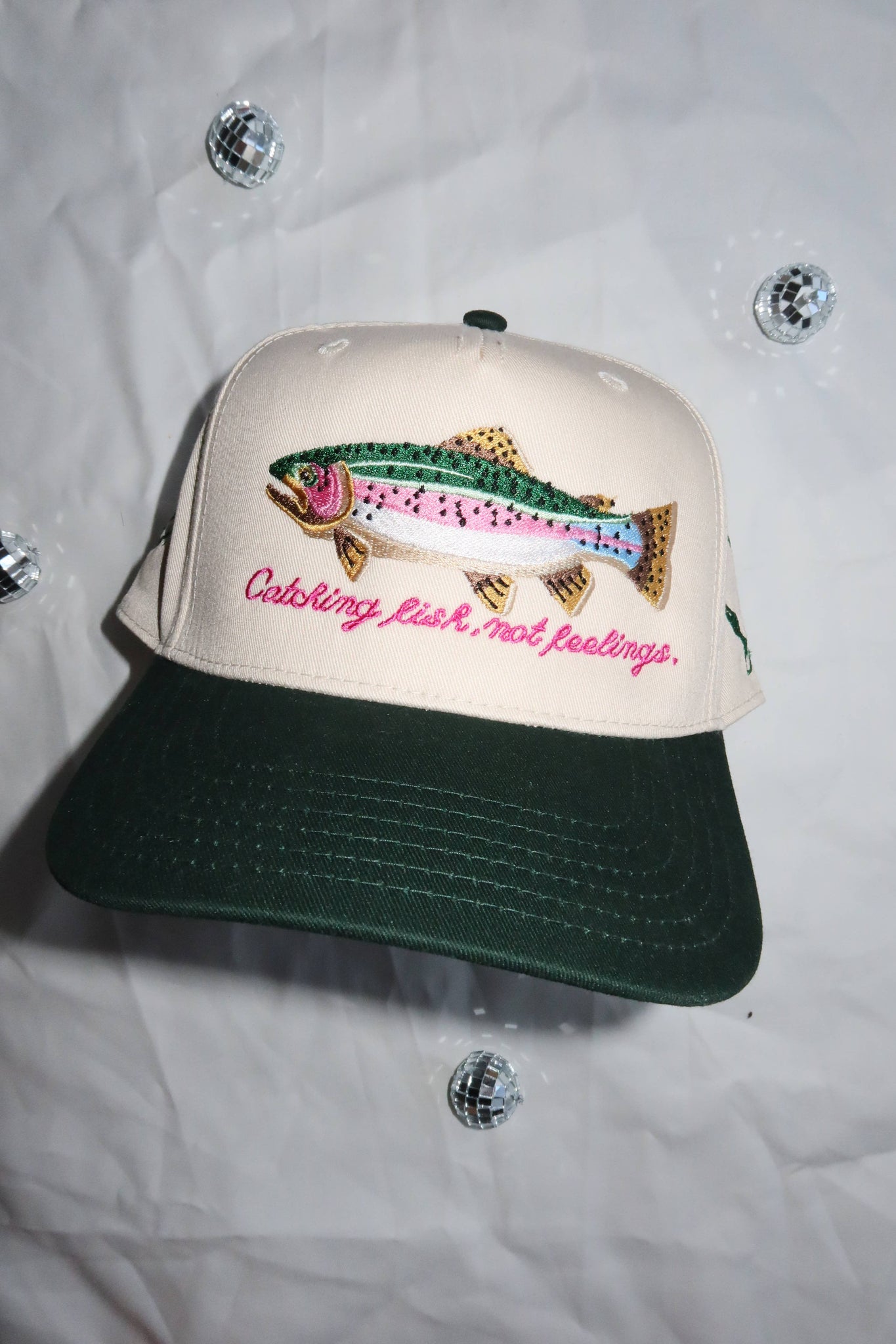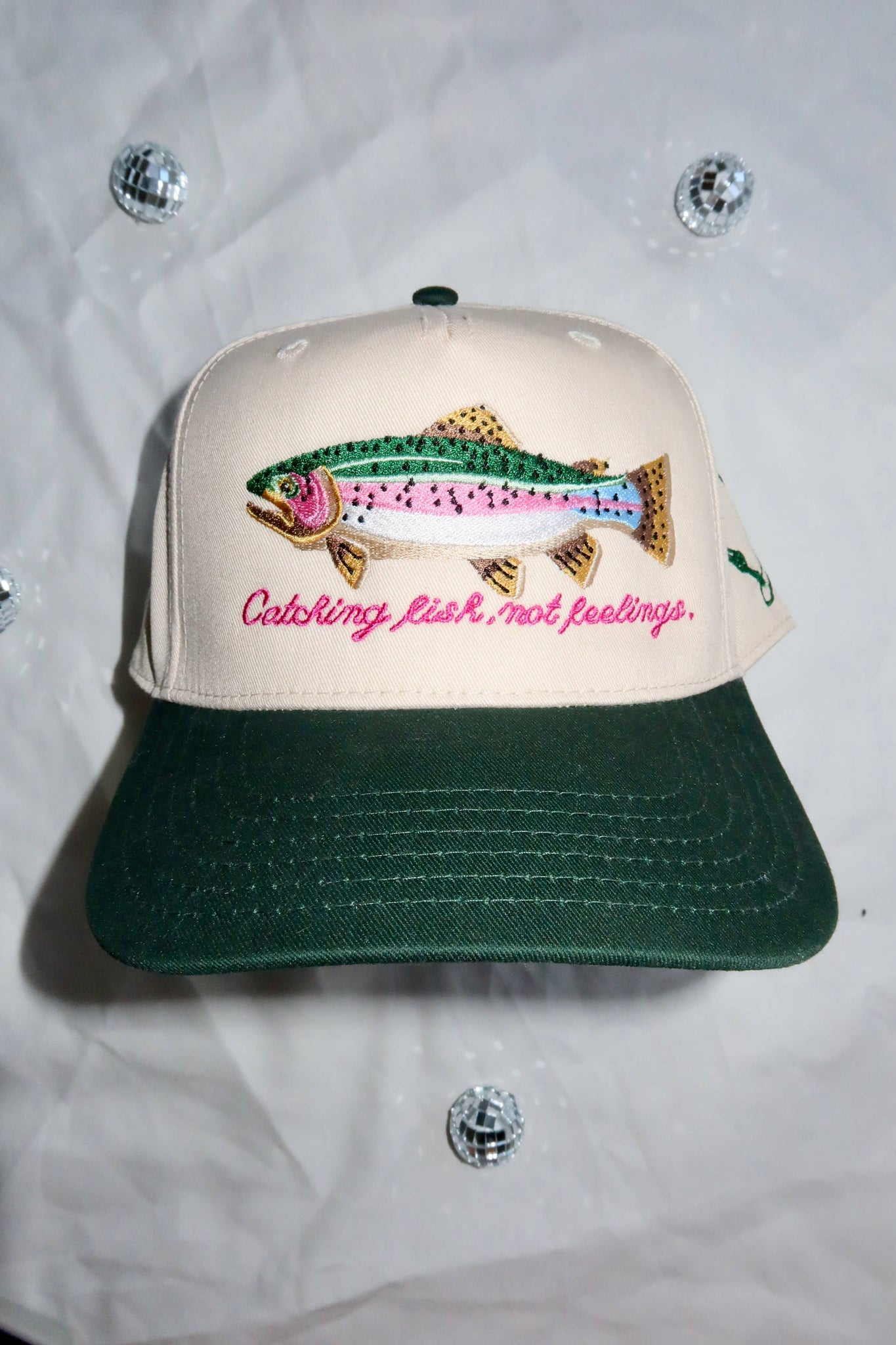 perfect gift for the fishing girlies! cute, fun, girly & edgy fishing hat! if you'd like this in another color please message us.