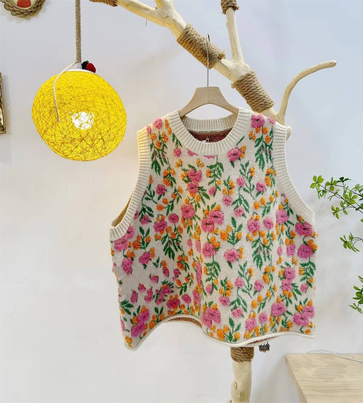 Fit : S, M Soft knit fabric, lightweight and breathable. Sleeveless design for easy layering. Loose fit with a sweet French-inspired look—perfect for everyday wear.