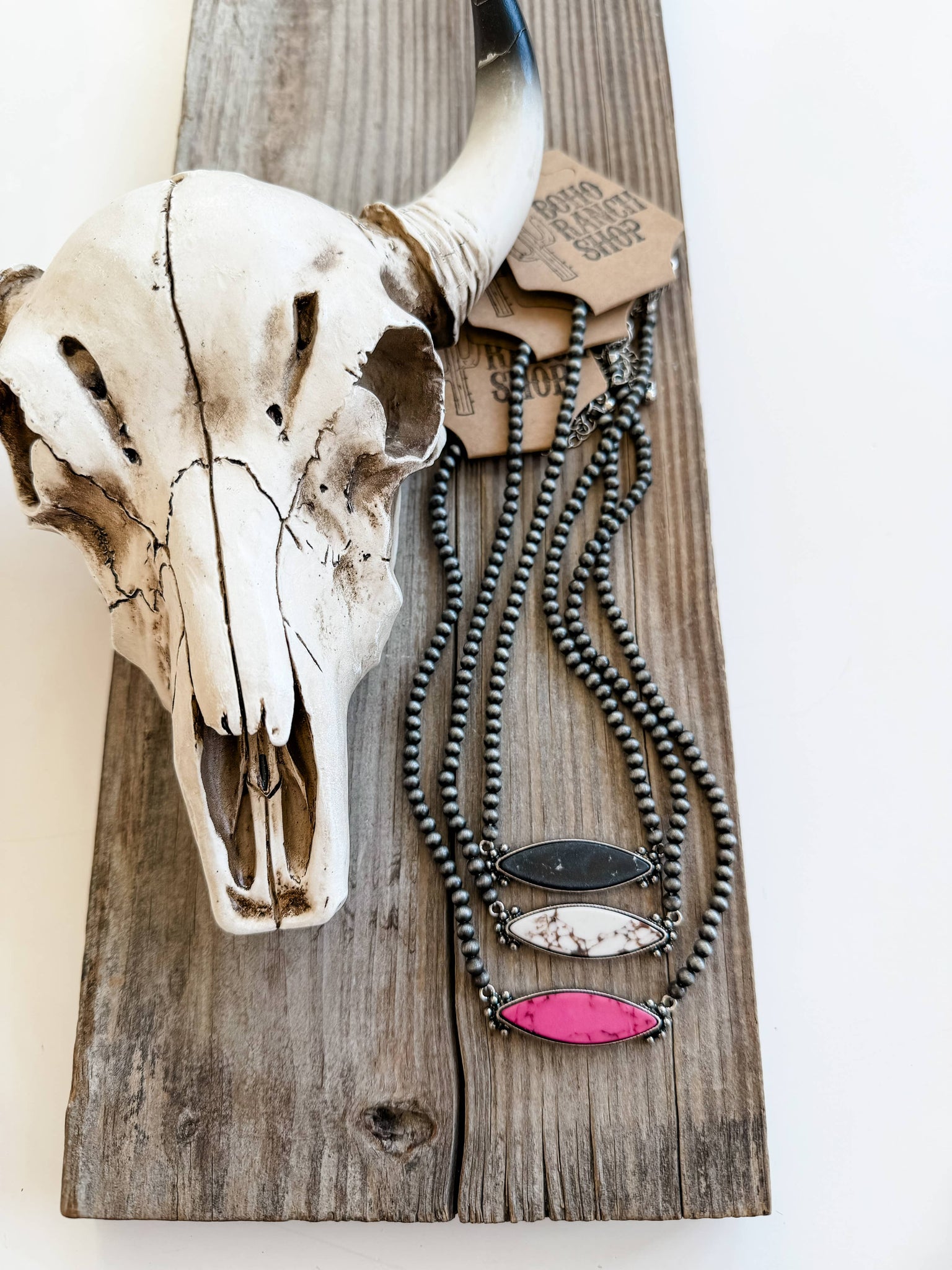 Navajo Pearl Bead with Turquoise Stone Pendant Choker Necklace Size: 14"L + 3"L Pendant: 0.5"L x 1.5"W Lobster Claw Clasps Brushed Silver, Navajo Pearl Bead, Turquoise Stone Lead Compliant