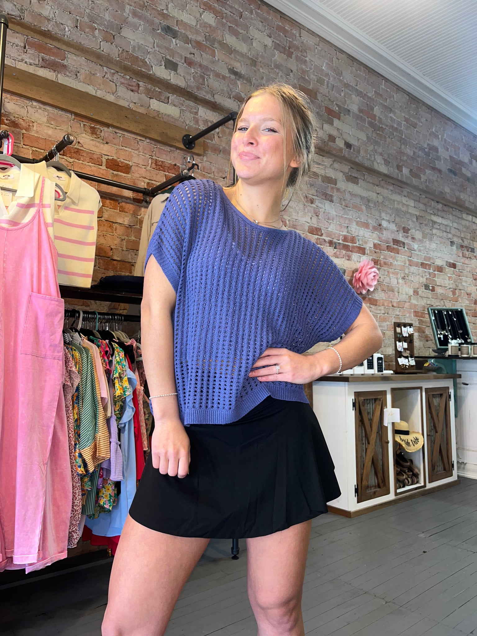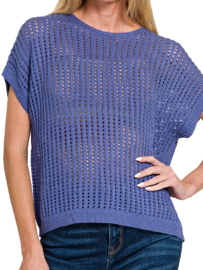 VISCOSE CROCHET KNIT SHEER HOLLOW SWEATER TOTAL BODY LENGTH